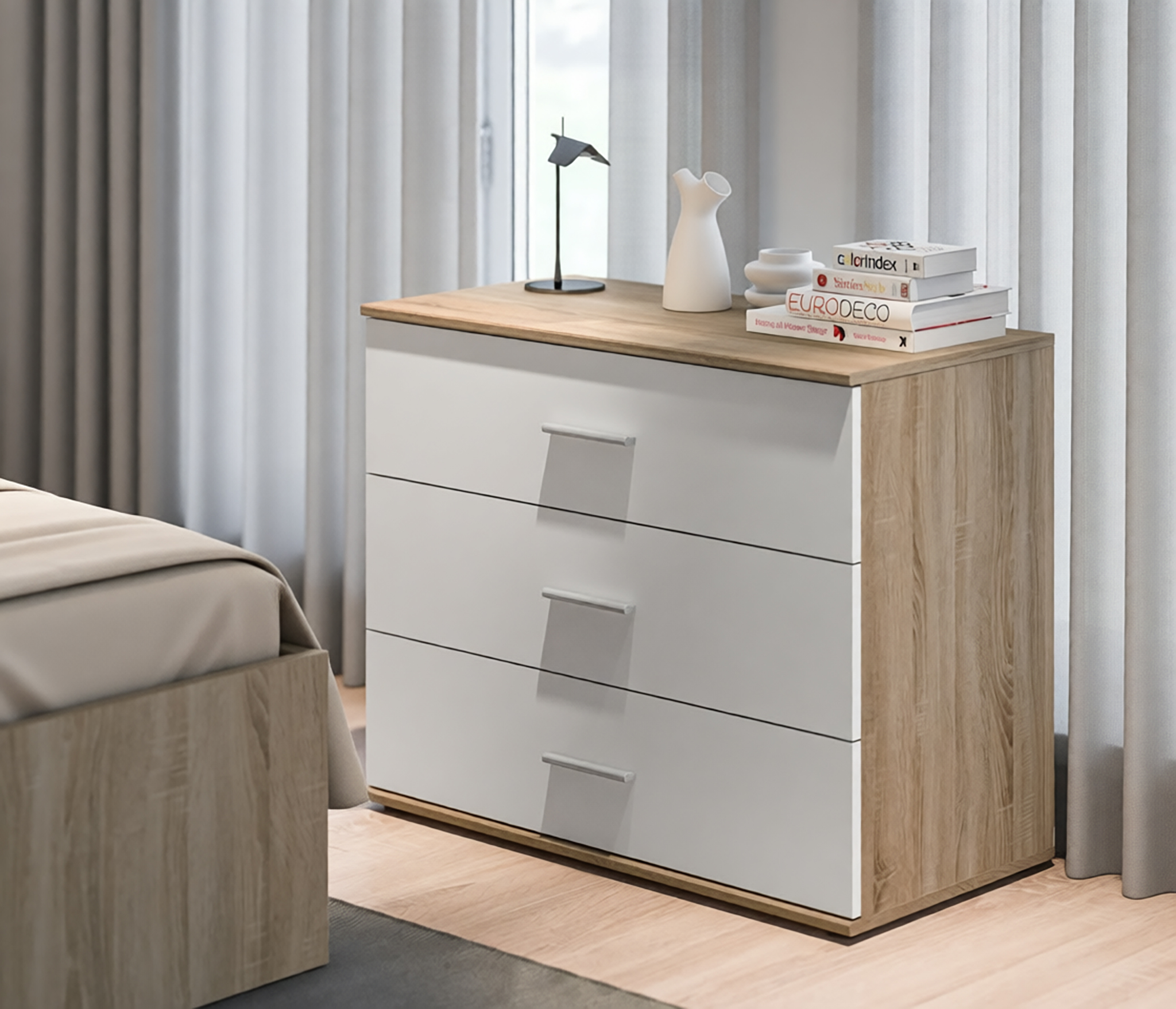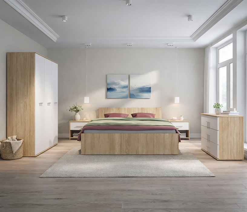 Мамбо СБ-2679 Кровать Дуб СономаМамбо СБ-2540/1.Н Комод Дуб Сонома/Белый