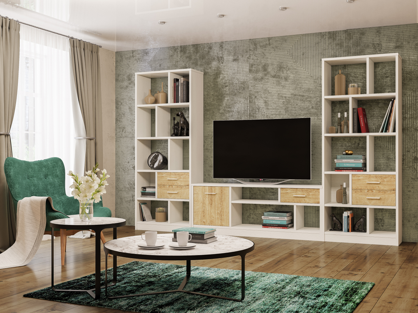Стеллаж Виктория ВИ-2К (Белый/Дуб роше) Код I0000212147