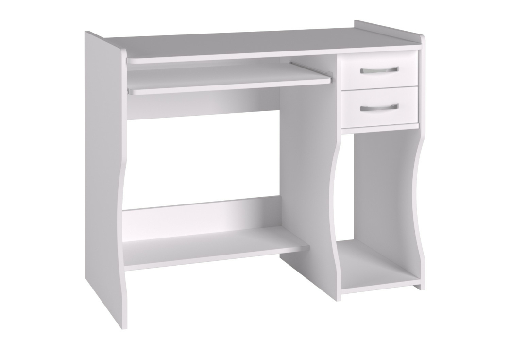 Свободная рабочая поверхность компьютерного стола С-203 предусматривает место для монитора, аудио колонок и негабаритных предметов для письма или компьютерных аксессуаров. Имеются два ящика на роликовых направляющих, выдвигающаяся полка для клавиатуры, место для системного блока и полка для папок внизу стола.