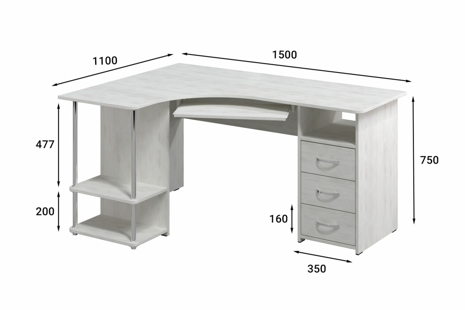 Материал корпуса/фасада: ЛДСП 16 мм. Размеры модуля (ш/г/в) в мм: 1500х1100х750.