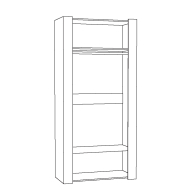 Прямой двухдверный распашной шкаф. Лицевая фурнитура — металл, хром, зеркало. Наполнение: полки и штанга. Максимальная нагрузка на полки — 4 кг.