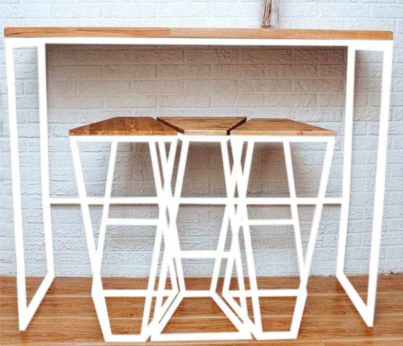 Каркас: профильная труба 20х20 мм.Прочное полимерно-порошковое покрытие черного, белого и серого цвета Дерево: массив сосны 20 мм, покрытое специальным маслом для мебели, цвета на выбор: бесцветный, белый, серый, махагон, орех, морёный дуб, черный, клён, черный графит, голубой графит, темное золото графит, золото графит.