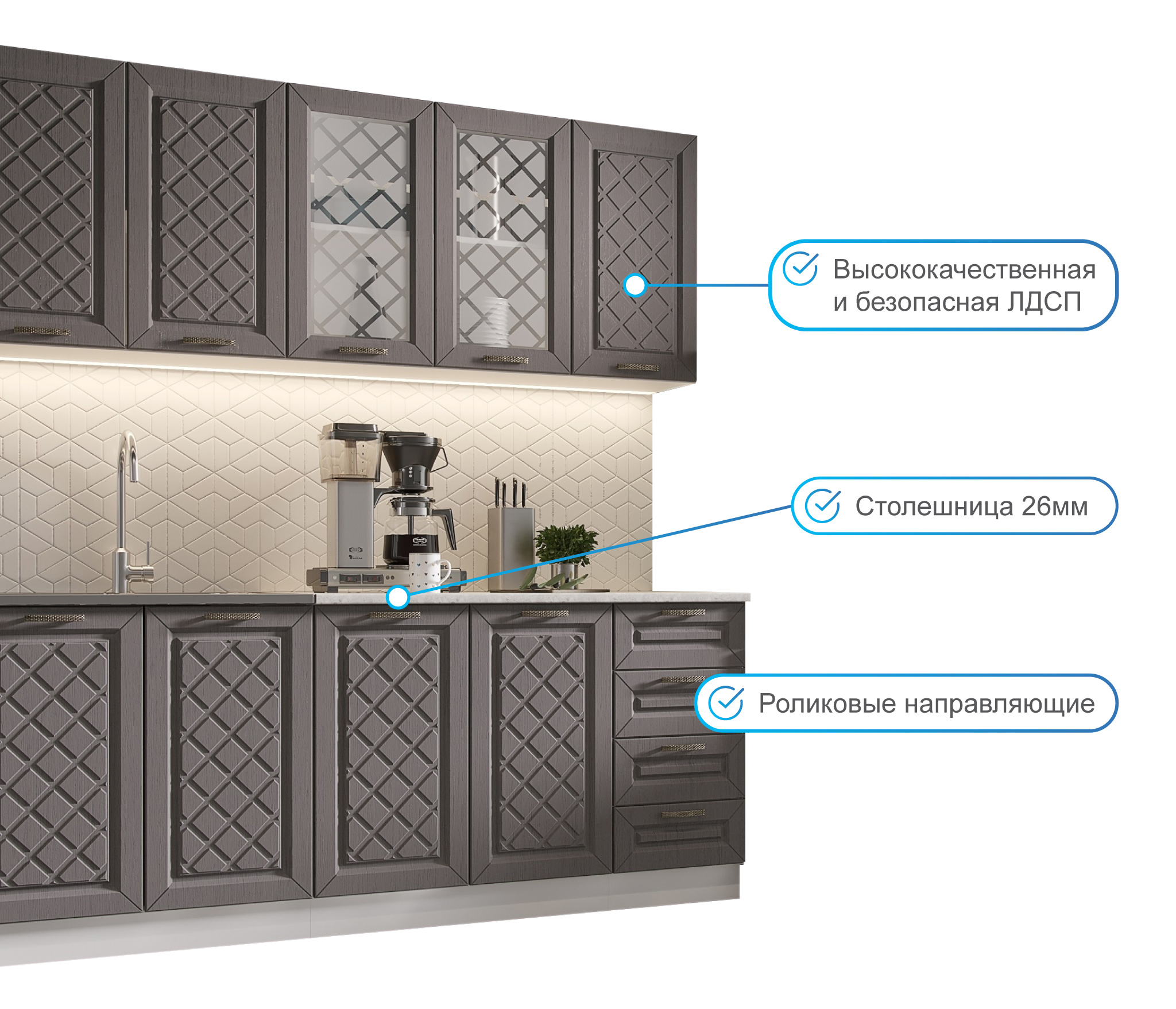 Материал исполнения: корпус-ЛДСП / Фасады-МДФ