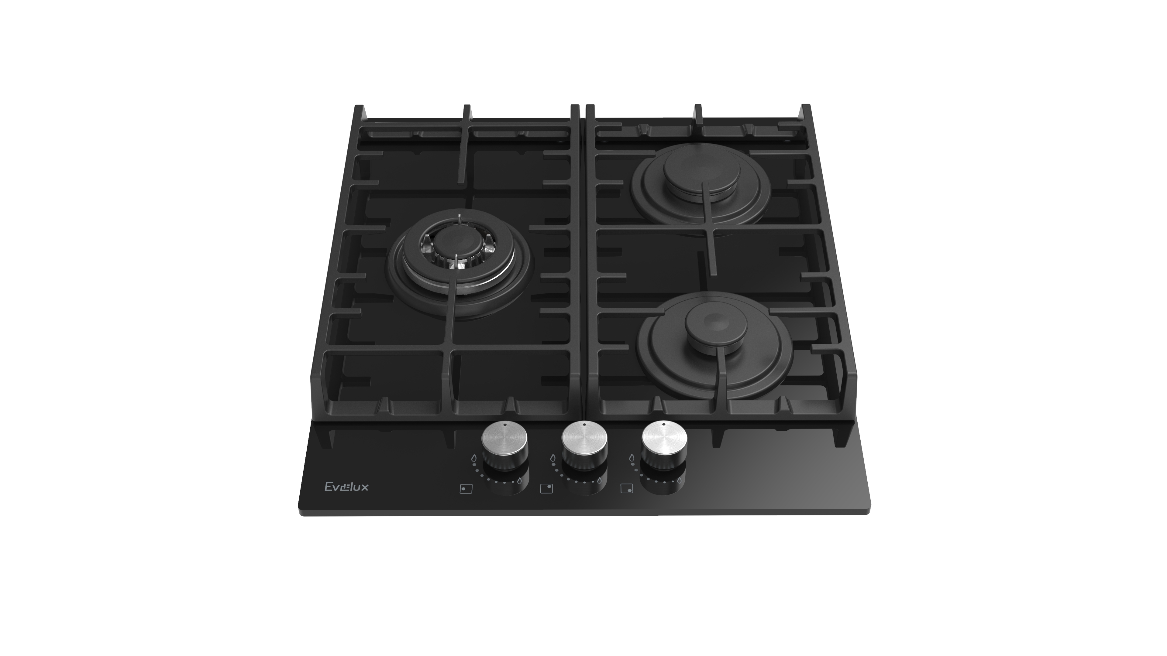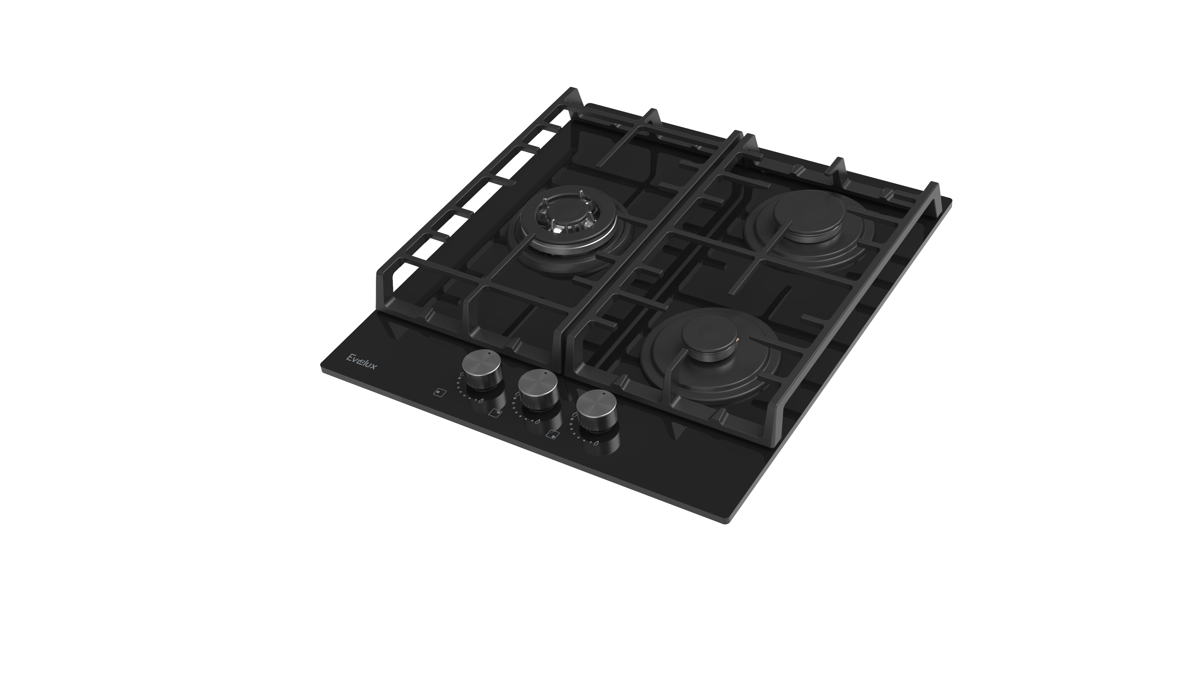 Поворотные регуляторы газовых варочных поверхностей Evelux выполнены из металла, что создает профессиональный стиль и препятствует их перегреву.