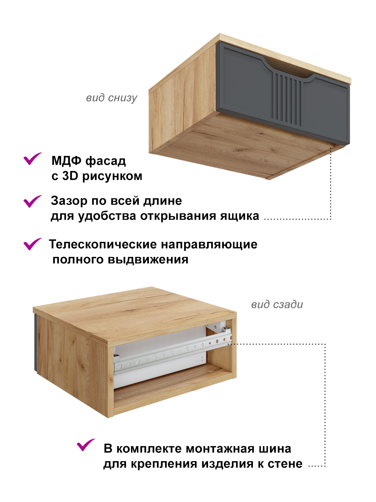 Тумба подвесная/консольный столик Эмилия ЭЛ-23 с выдвижным ящиком идеально впишется в любой интерьер. Изящный дизайн, функциональность и компактность, а так же его крепление на стену позволяют создать интересное дизайнерское решение и интерьер не будет выглядеть громоздко. Отсутствие лишних деталей делает консоль легкой и практичной не загромождает пространство визуально. Несмотря на компактный размер столешница позволяет разместить ноутбук, зеркало, косметичку, настольную лампу или все для учебы и творчества. Установить можно практически в любом помещении: в детской комнате, в гостиной, в прихожей, на балкон или лоджию как полка для зеркала, для ключей, для создания индивидуального интерьерного решения. Дополнив тумбу зеркалом ЭЛ-5 вы создадите прекрасный комлект. Фурнитура: телескопические направляющие полного выдвижения без доводчиков. Важная информация. Мебель доставляется в разобранном виде, в упаковках.