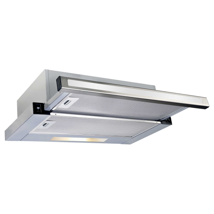Встраиваемая с выдвижным экраном, ширина 60 см, 2 режима, клавишное управление, 600 м3/ч., алюминиевые жировые фильтры,LED освещение.
