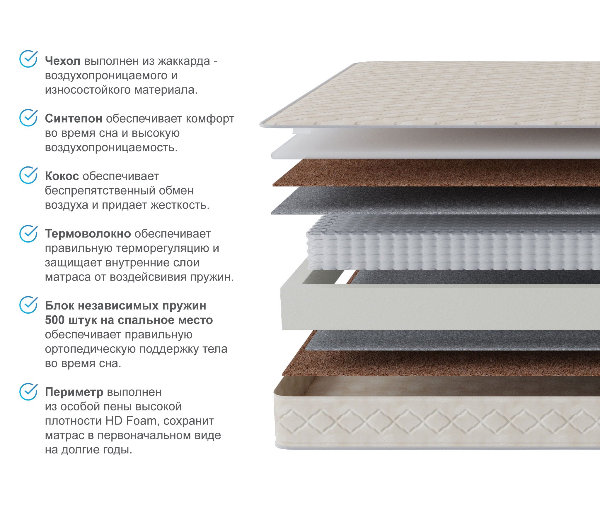 Основа: блок независимых пружин (Pocket spring);