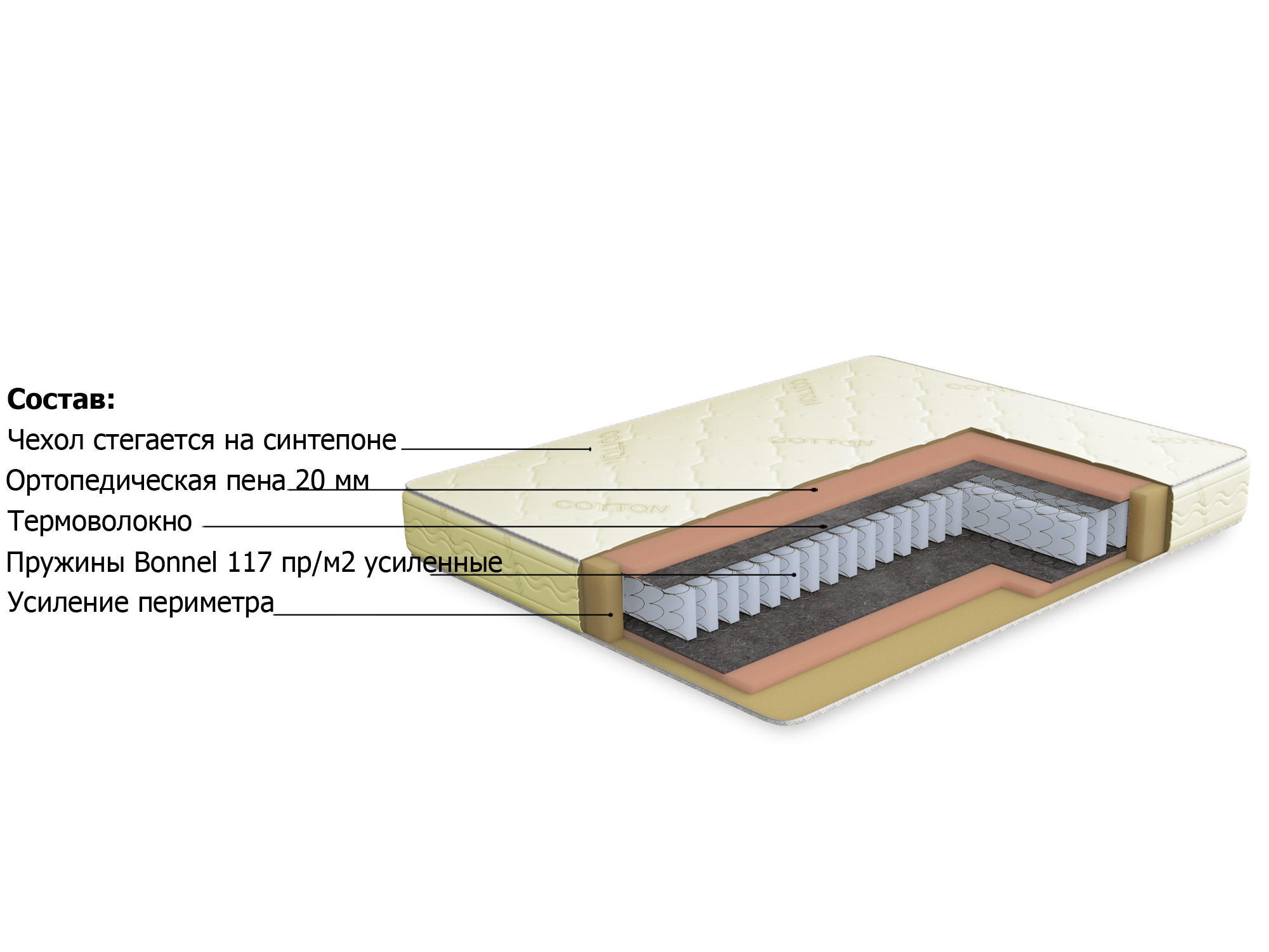 Чехол: жаккард хлопковый, стеганный на синтепоне;