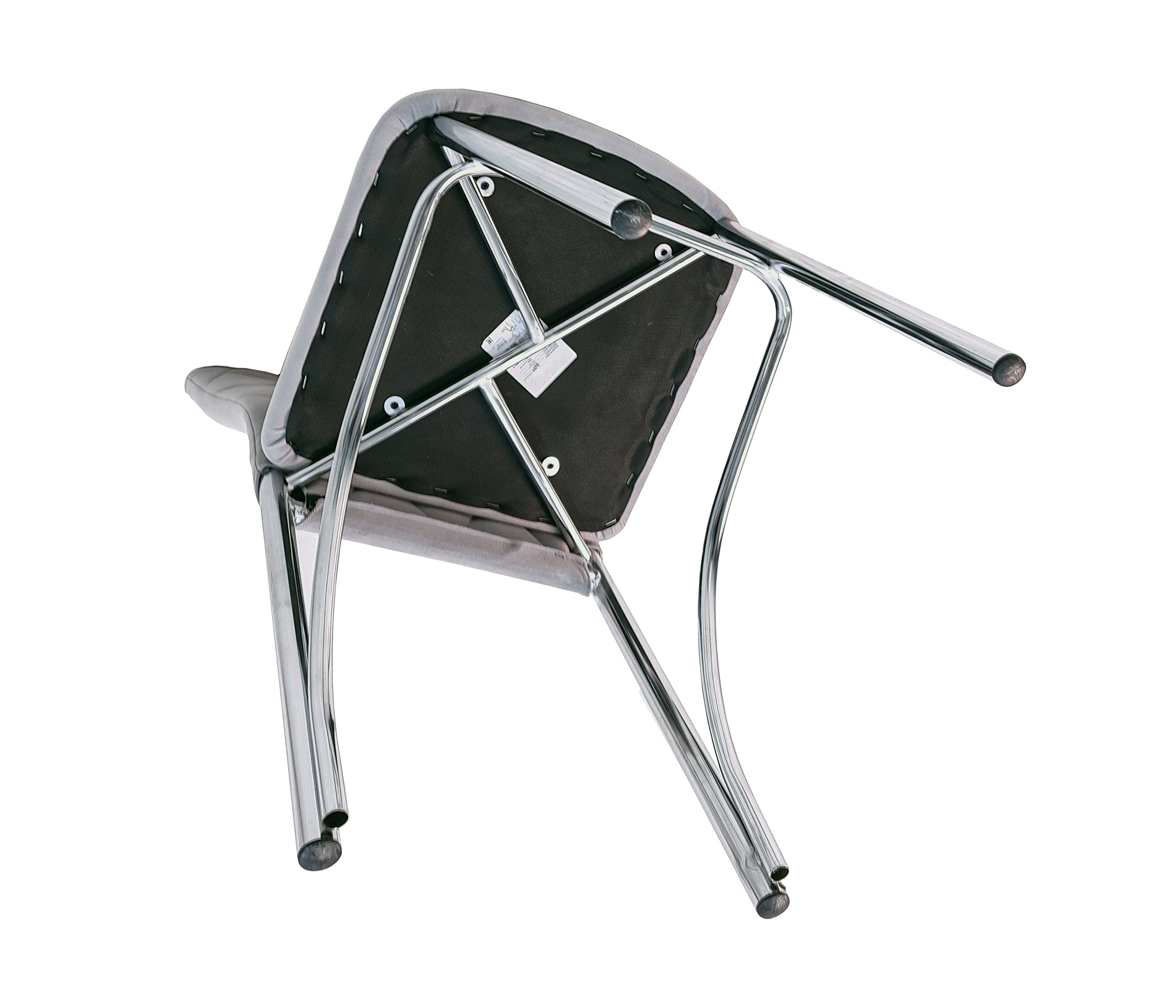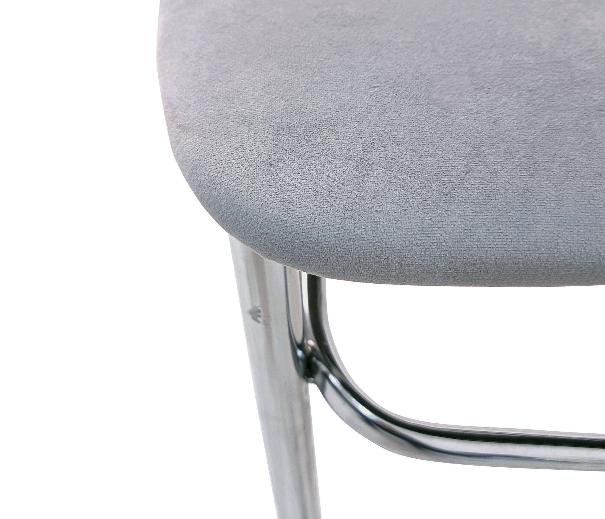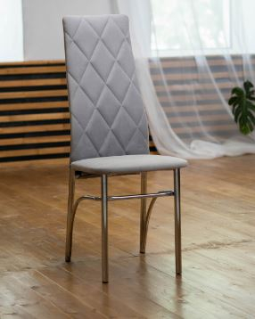 Элегантный стул с высокой спинкой, материал - ткань/металл. Размер 1030мм*400мм390мм (в*ш*г). Высота от пола до поверхности сидения - 450 мм . Каркас выполнен из хромированной трубы D25 мм; толщина трубы 1 мм.