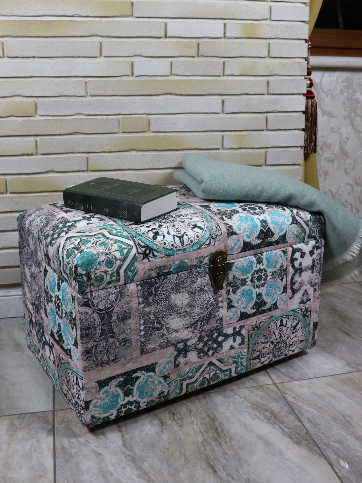 Банкетка ""Восточный "" с ящиком для хранения в восточном стиле сделан из принтованного велюра в мексиканской стилистике.
