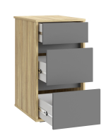 Тумба Оскар ОС-10 выполнена в минималистичном дизайне, что придаст лаконичность вашему интерьеру. Оснащена тремя ящиками на телескопических направляющих полного выдвижения без доводчиков. Функциональная тумба для рабочего места станет неотъемлемой частью Вашего дома, так как вместительные ящики полного выдвижения позволят хранить в них дорогие для Вас вещи. Отсутствие лицевой фурнитуры подчеркнет индивидуальность интерьера Вашего дома, детской комнаты, а также послужит функциональным местом для хранения документов в рабочем кабинете. Тумба с ящиками - это удобное дополнение к письменному или компьютерному столу, прекрасно подойдет к столам ОС-22, ОС-25. Регулируемые опоры позволяют компенсировать возможные неровности пола.