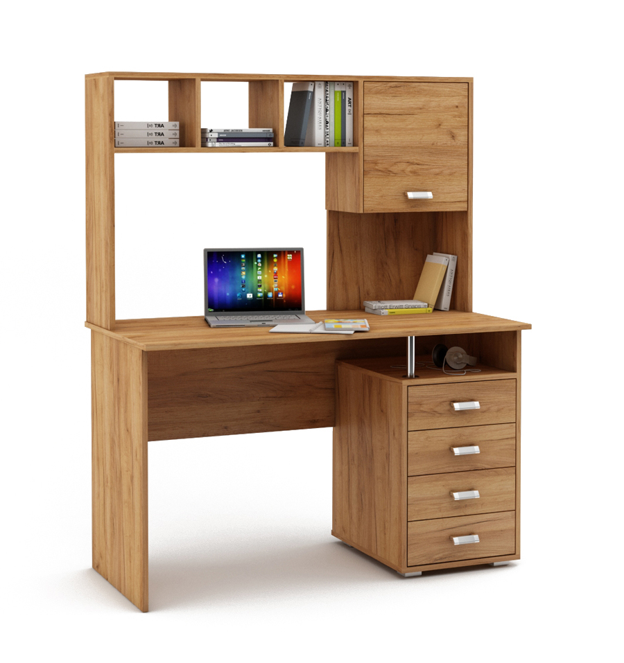 Компьютерный стол Имидж-53 состоит из большой столешницы, выдвижных ящиков и надстройки с закрытыми и открытыми нишами, превращаясь тем самым в полноценное рабочее место в офисе или функциональное место для школьника в детской комнате. На столе хватит места для ноутбука и компьютера, а открытые полки можно использовать для книг, канцелярии или документов. Верхнюю полку можно использовать в качестве подставки под принтер, а системный блок поставить под стол.