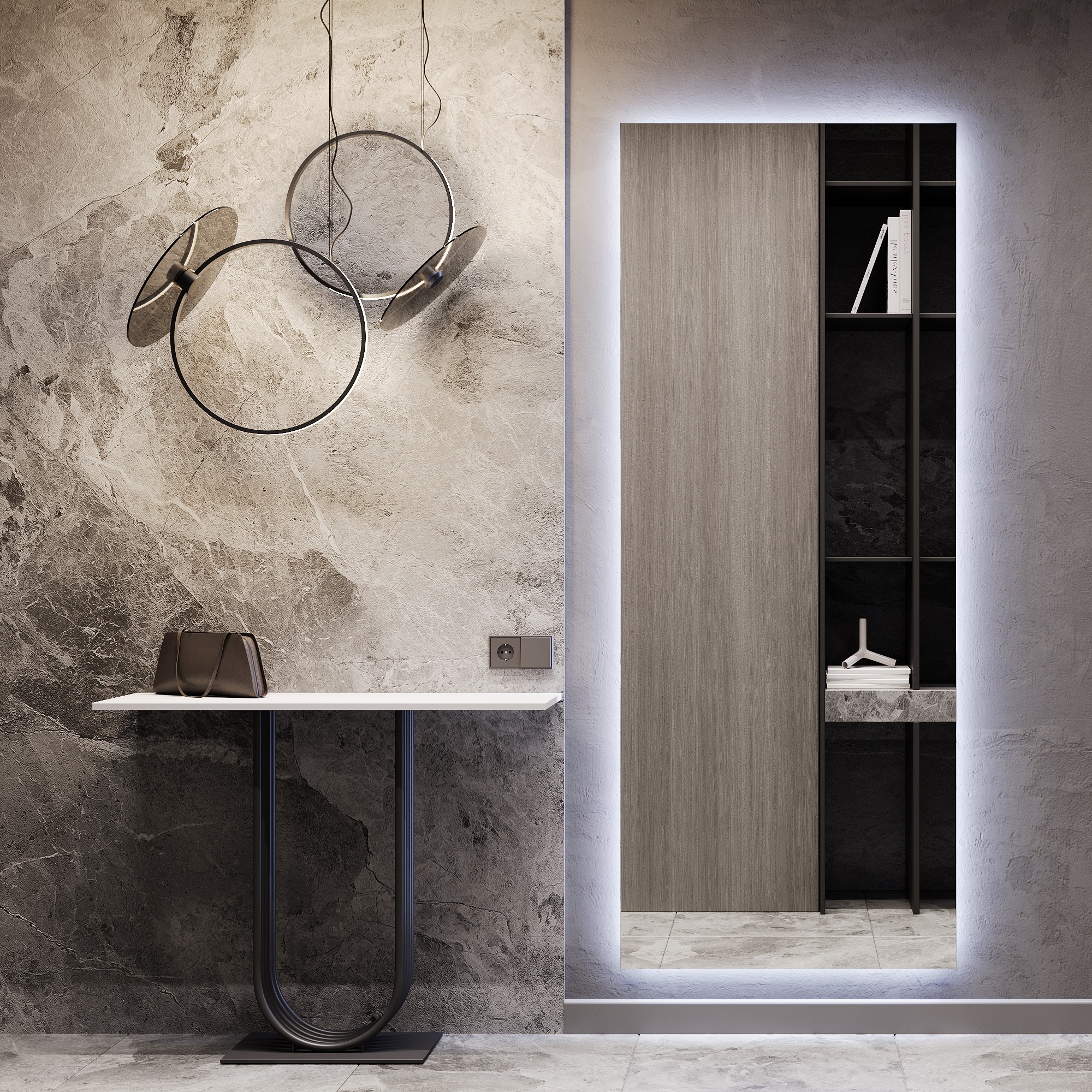 Безрамное зеркало прямоугольной формы с контурной (тыльной) нейтральной подсветкой, свет 4000К. Подложка из высококачественного МДФ, светодиодная лента защищена матовым свето-рассеивателем от попадания пыли и влаги. Есть вывод 220W для подключения к сети (блок питания подсветки 12V), включение подсветки от выключателя на стене, либо от розетки. Возможно установить сенсорную кнопку на заказ в любом месте зеркала. Саморезы в комплекте. Размер в упаковке 2050*1050*65 мм.