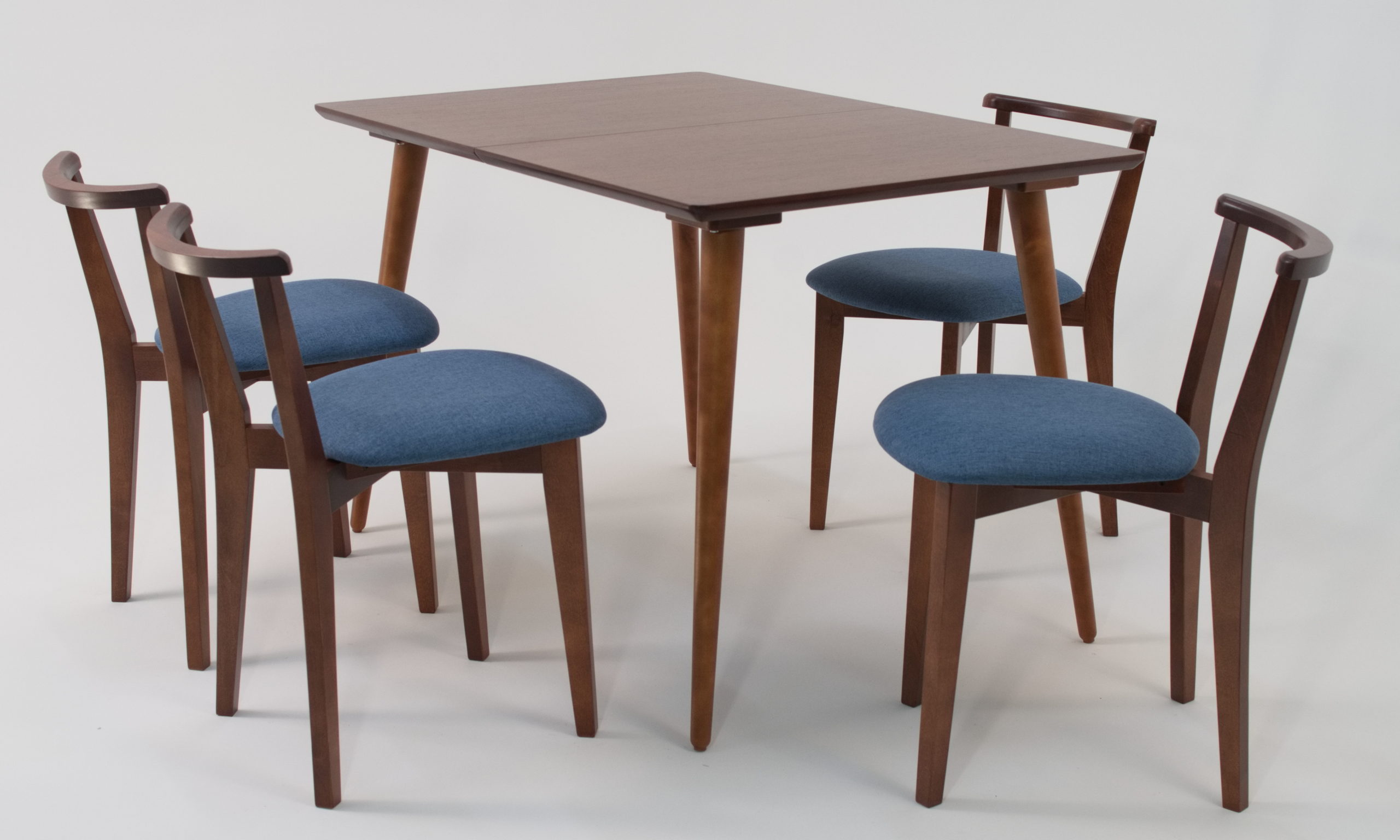 Опоры выполнены из натурального дерева высокой плотности — берёзы. В этой коллекции столешницы выпускаются в нескольких вариантах -МДФ со шпоном и натуральными оттенками, либо МДФ с покрытием эмалью (производство — Италия).