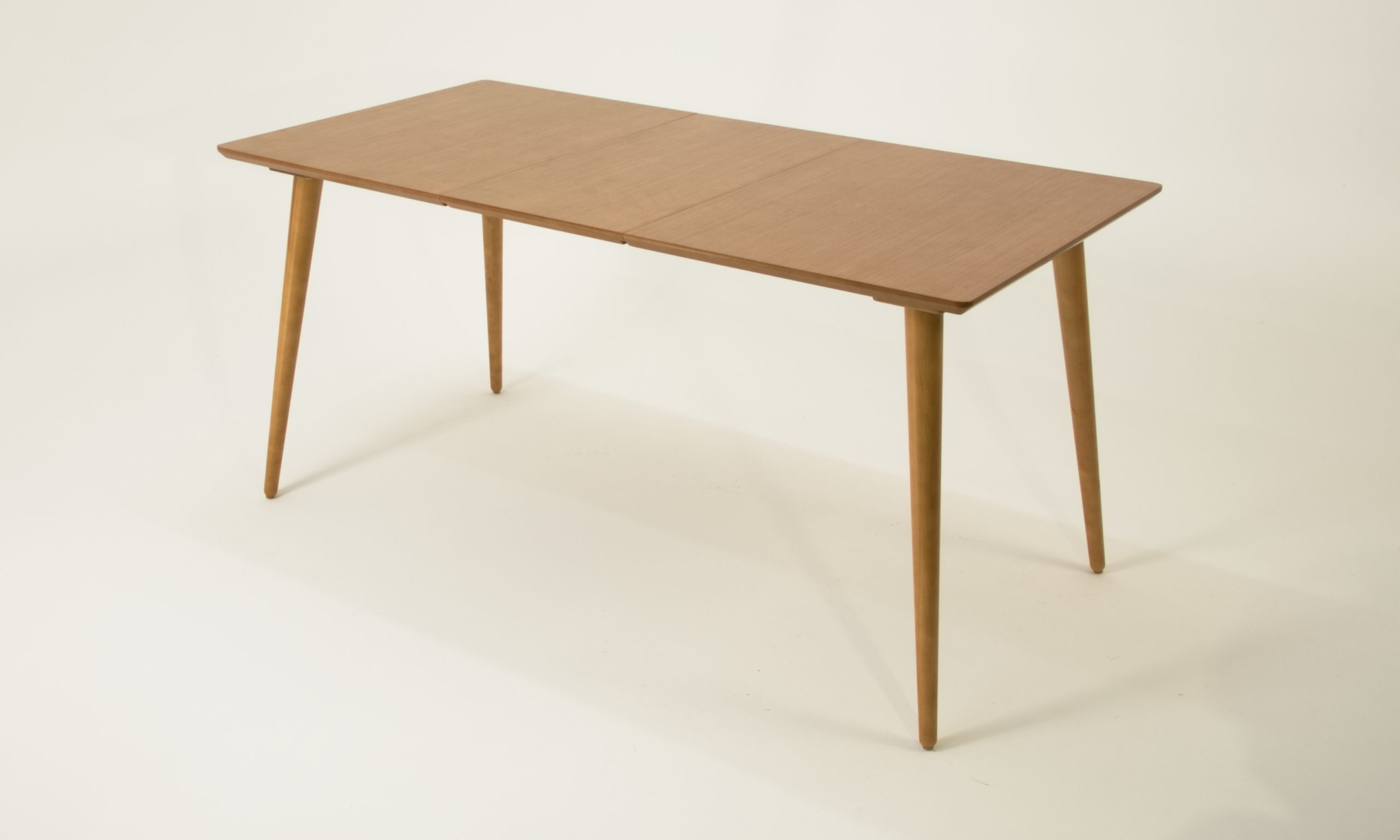 Стол необычный — у него нет несущей рамы и при этом стол раскладной — в разложенном состоянии (160 сантиметров) с комфортом разместит 8 человек (или 10, если посадка будет очень плотной).