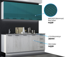 Кухня Лагуна 1,5 м К2 Морская волна/Дуб седой МДФ Код R0000304935