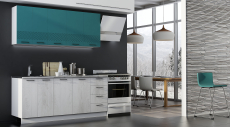 Кухонный гарнитур Лагуна длиной 1,5 метра подойдёт как для малогабаритной кухни, дачи, так и для небольшой кухни-гостиной. Кухня выполнена в стиле модерн и органично впишется в современный интерьер. Верхние фасады в цвете морской волны создадут атмосферу покоя и умиротворения. Нижние фасады с воздушной древесной структурой дополнят кухонный гарнитур легкостью. Распашные шкафы и выдвижные ящики вместят всю необходимую посуду, кухонную утварь и продукты.