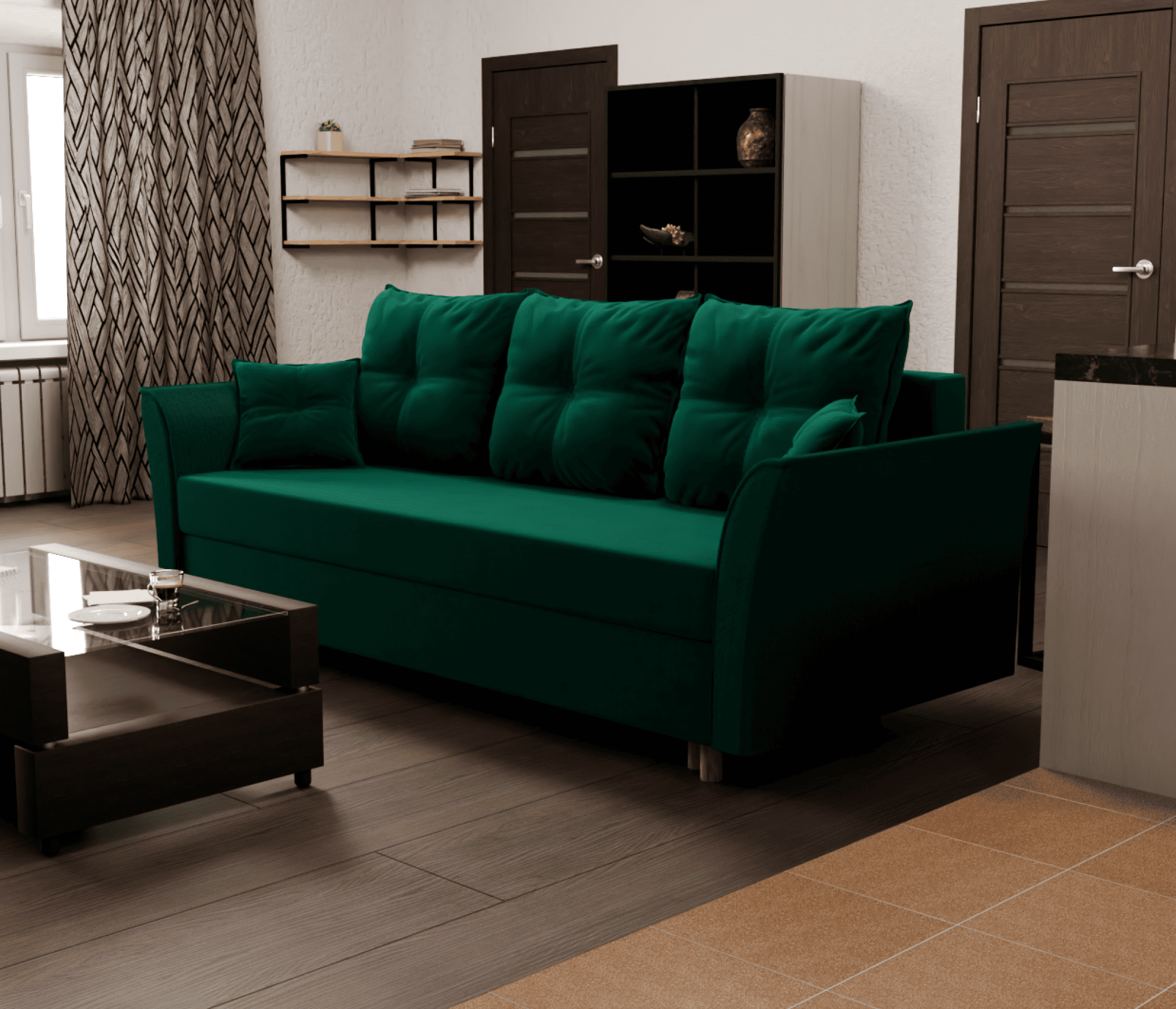 Этот диван-кровать является прекрасным решением для тех, кто ценит комфорт, стиль и универсальность. Изготовленный из прочного велюра, механизм "евро-книжка", что делает его легко трансформируемым и подходящим для любого интерьера. Благодаря съемным подушкам, диван можно легко адаптировать под ваши потребности и обеспечить дополнительное удобство. Его высота, ширина и глубина обеспечивают удобную посадку, а размеры спального места позволяют разместить до 2 человек.